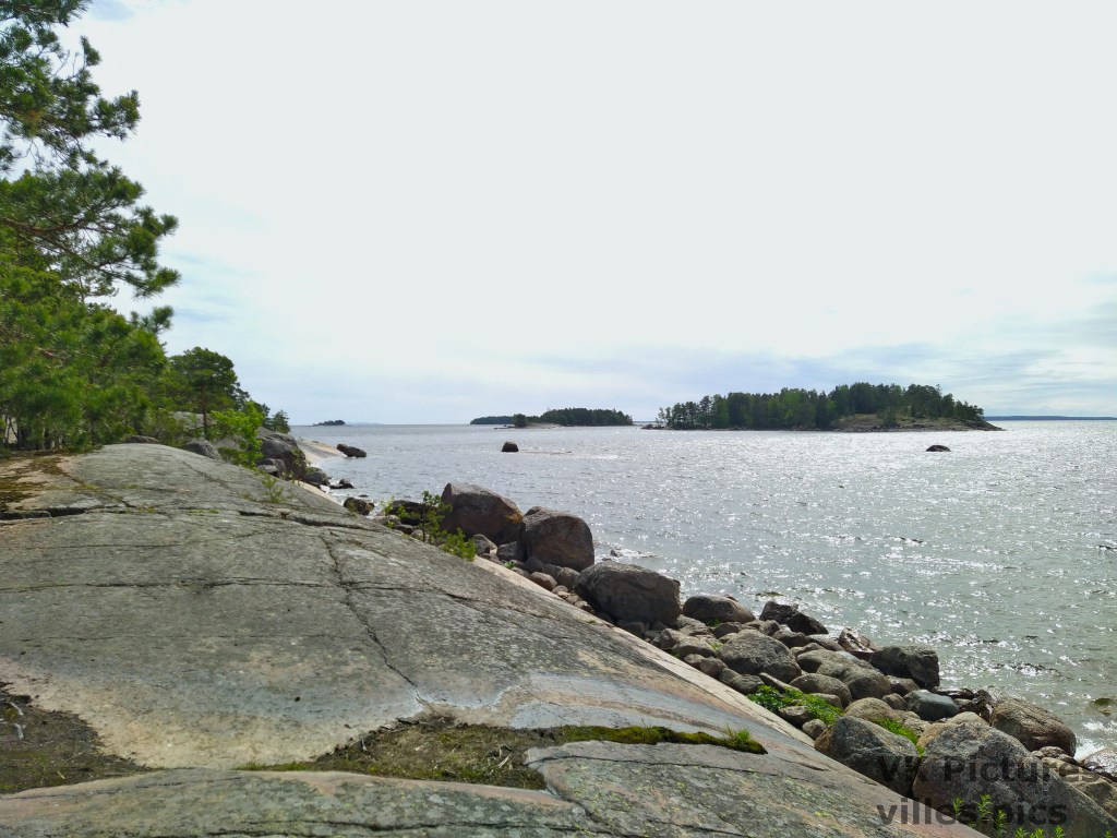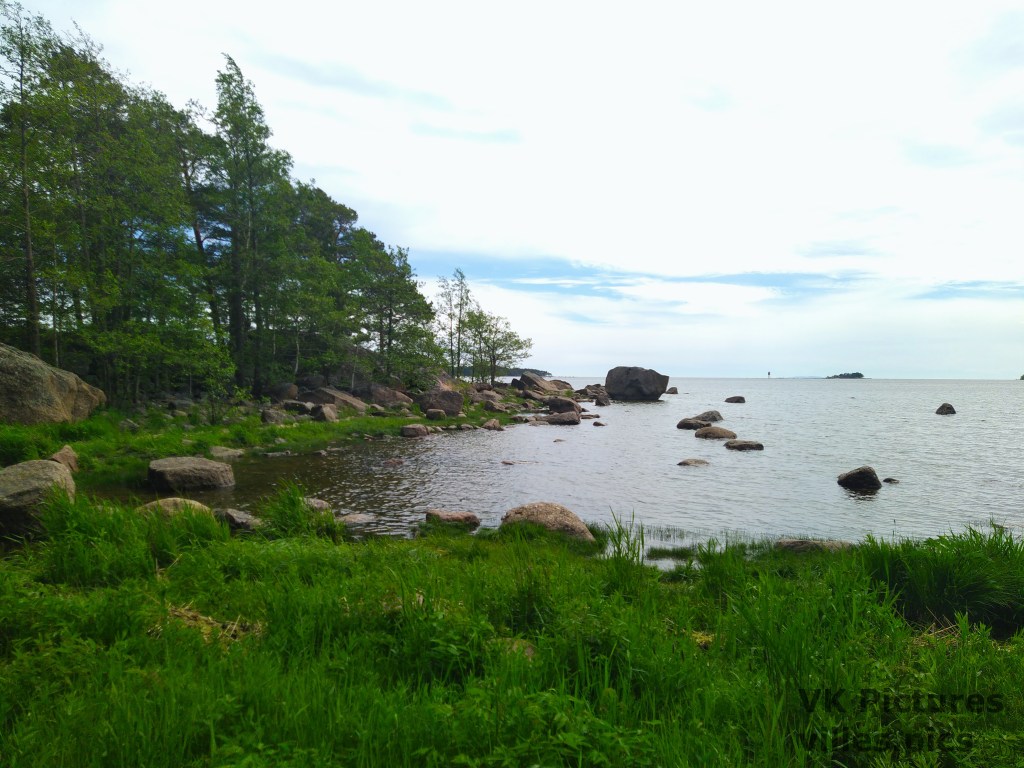 The coast itself is a combination of rocky ares with some grassy areas in between. The coast only last a few meters at most from the coast. Then the landscape changes into the forest seen in the above pictures. Visible from the coast are small islands in the Baltic Sea on the coast of Finland.