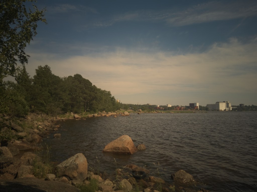 At the Norssaari island, a tire was floating at the coast. I tought that I could take a nice picture of it, but the tire was located at a place where the coast was a steep cliff. Because of this, I had to hold my phone so that I could not see the screen. As a result, the picture was at a weird angle and the focus is not on the tire. I still like the picture enough to put it here.