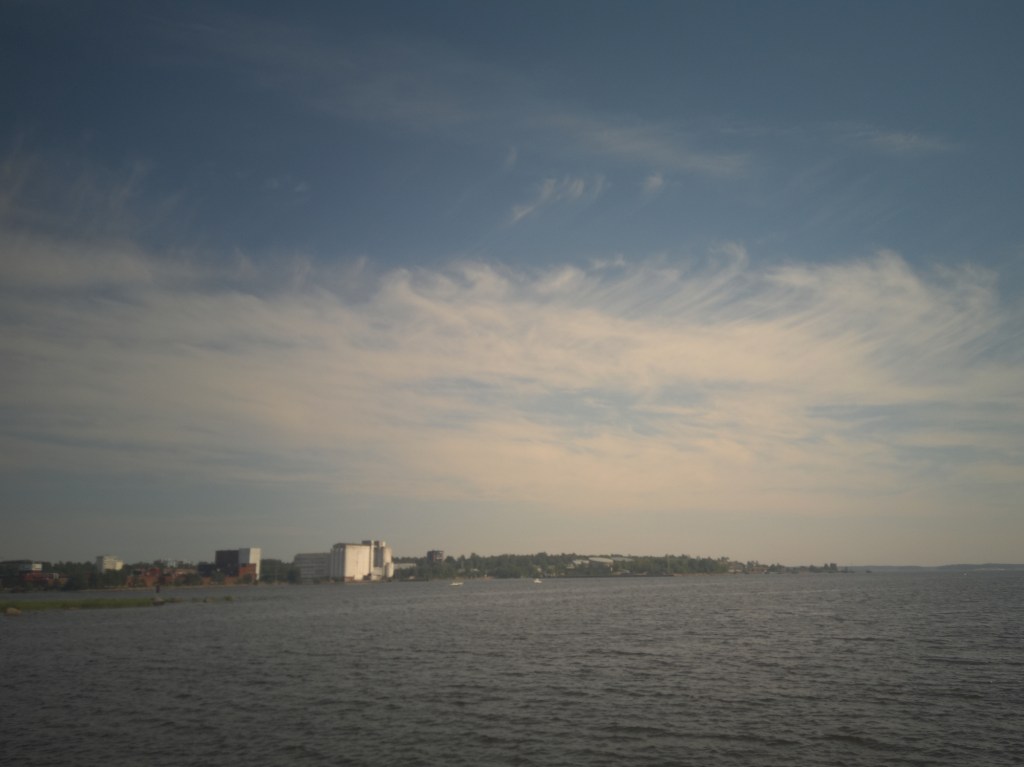 As an extra, here is a picture from the mouth of the Kymi River in Lankila. Mussalo island is the large area of land far and to the right in the picture. The bridge across Kotkansaari and Mussalo, where I took the above pictures, is in this picture, but is difficult to see with this quality.