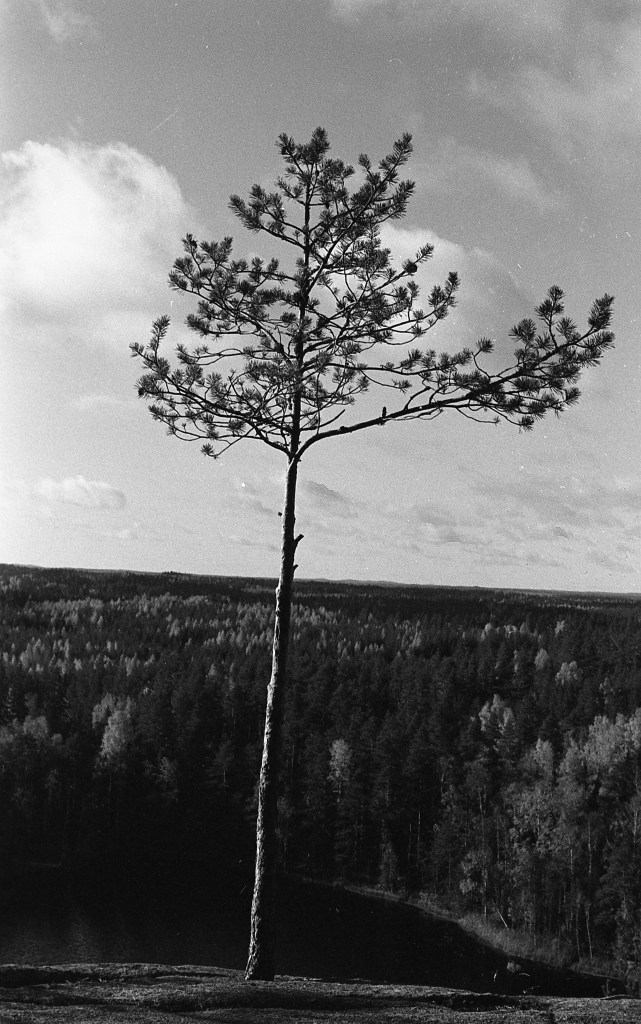 When I recently visited the Repovesi national park, I took a film camera with me. These pictures are from the same locations as in the previous posts about Repovesi. Last (and the first) time I tried developing film, I made some mistakes and ruined many of the pictures. This time I actually managed to get every picture developed. However, I did not yet have a scanner (I wanted to get my own since the film store where I got my pictures scanned the last time only could send low resolution versions to me through the internet) and while I waited for it, I did not know really how to store the film properly. This has led to some damage to the developed negatives that can be seen in some of the pictures.