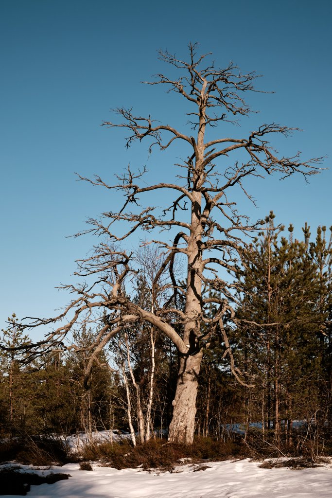 The Störträsk lake was frozen and the coast was covered in snow. Because the sun was shining from directly the other side of the lake, the contrast was high and I could only take pictures of the coast on my side.