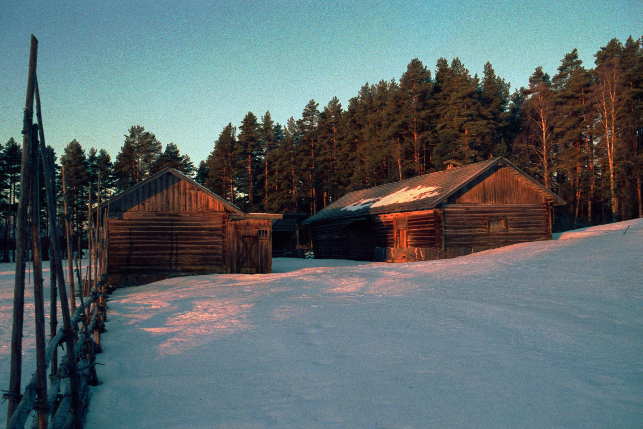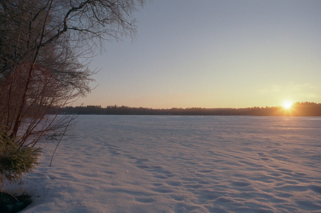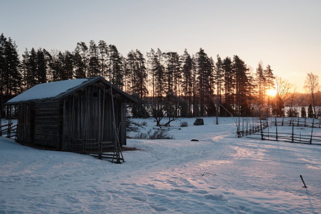 Liesjärvi national park is located around the Liesjärvi lake, with some parts of the coast of the lake being part of the park. In the park, there is a small farm at Korteniemi peninsula, which is used as a tourist attraction. I went to the park in winter to walk the path on the coast of the Liesjärvi lake. At sunrise, I was at the Korteniemi farm and took the following pictures. Some of the pictures are taken with a digital camera, some are taken with colour film.