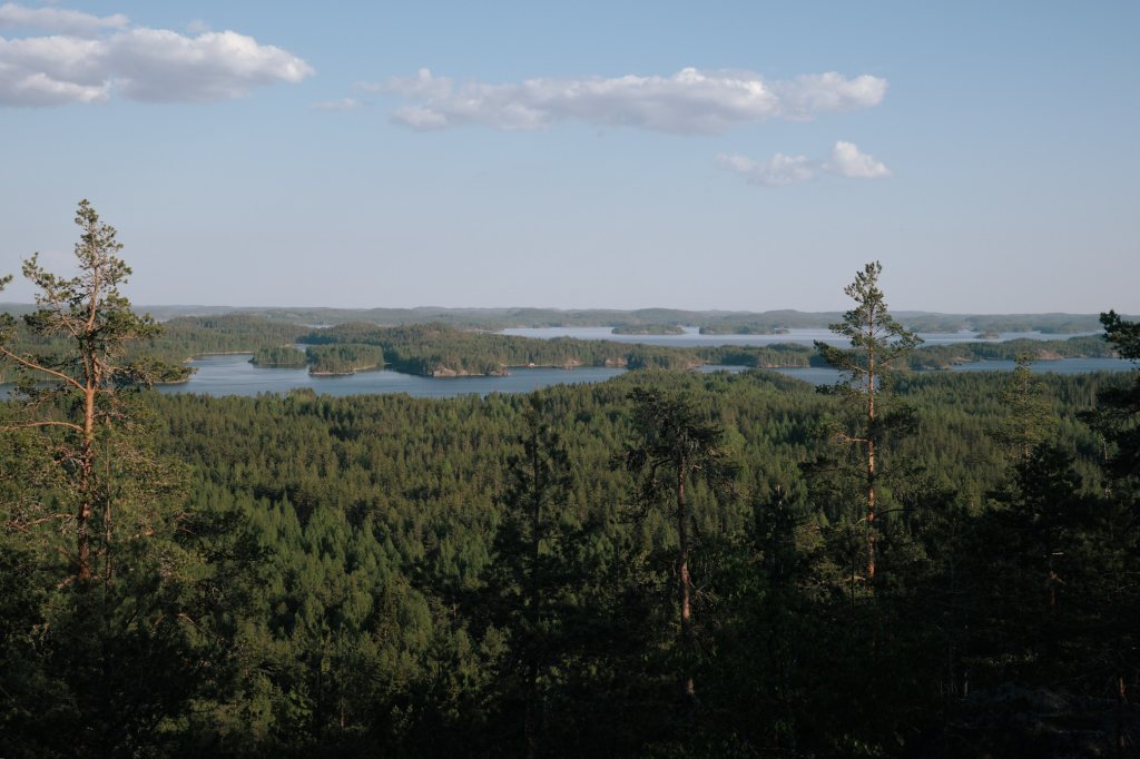 Lake luonteri, which is part of Saimaa, is visible from the hill. In the first two pictures here, the sun was shining just from right of the frame.