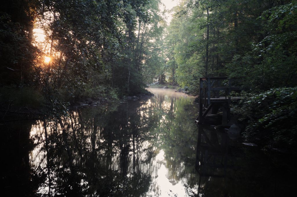I arrived at Lake Joutsijärvi early in the morning, when the sun was still behind trees. The path I took went trough the Tammi Camp Center and across the River Joutsijoki to the forest in Tammi.