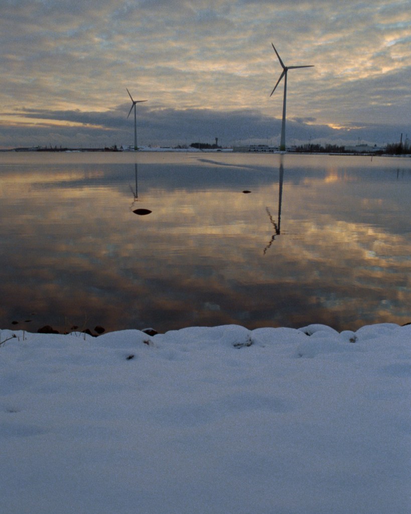Hamina is a town on the coast of the Baltic Sea in south-eastern Finland. I took some pictures from there during a visit this winter. The sun was mostly visible until the evening when it set below the clouds. Here are some of the pictures I took. They were taken with Kodak Ultramax 400 film.
