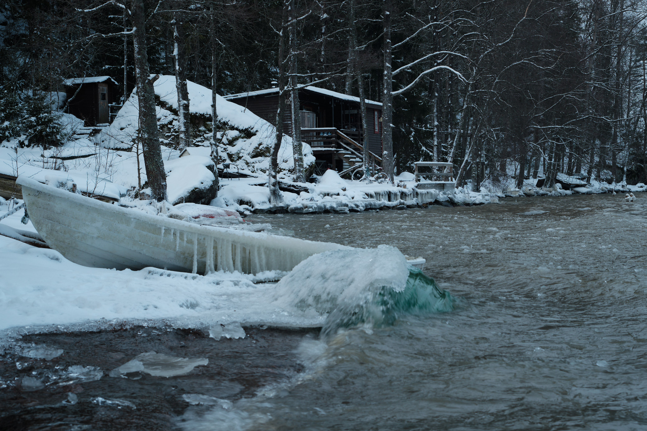 I first arrived on the coast of Pyhäjärvi lake. There are summer cottages and a beach here, but they look empty during the winter.