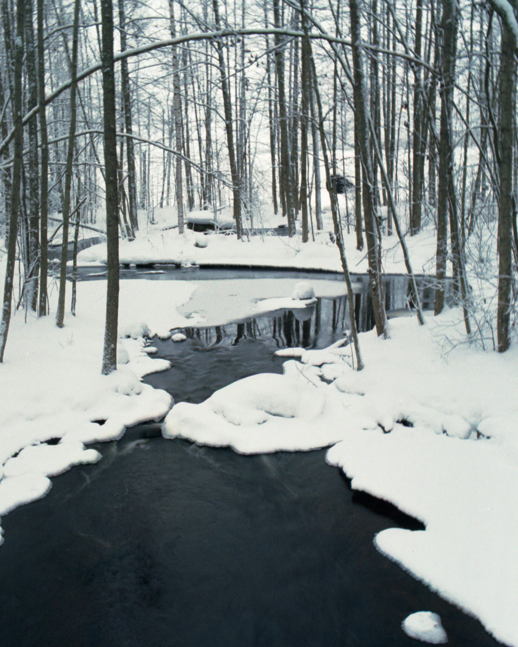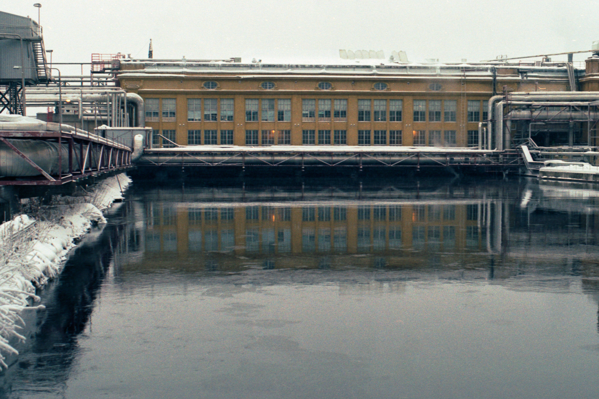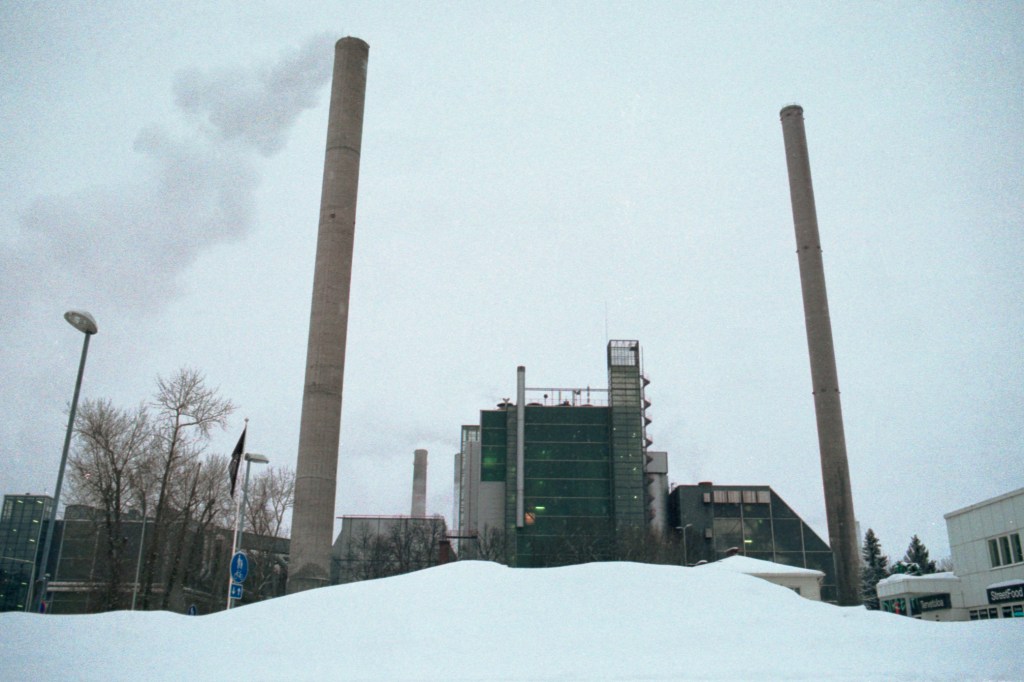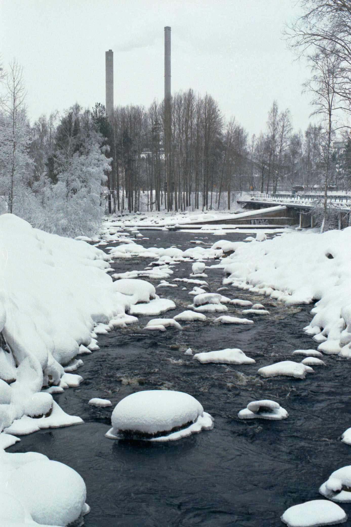 In january, I took some pictures with film from an indrustial area and a rapids close to it in the city of Varkaus where I now live. I took these pictures during two different days. During the first day it was very cloudy, and I walked past the paper factories in Päiviönsaari Island to the rapids at Kämäri. During the second day the sun was shining but I was taking pictures after work, so I did not have much time until sunrise. Because of that, I only visited the rapids in Kämäri. The film I used for these pictures was the new Fujifilm 200 color film.