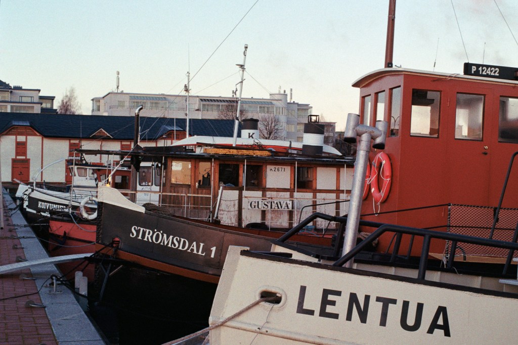 During a morning in autumn, I took some pictures from a port (or rather a marina) on the coast of the Kallavesi Lake and from the Puijo Hill in the city of Kuopio in Eastern Finland. The port was quiet during the early morning and most ships had been removed as a preparation for winter. I had originally planned to walk through a trail on the Puijo hill, but because I had already visited the port, I only went for a short walk near a (old?) ski hill.
