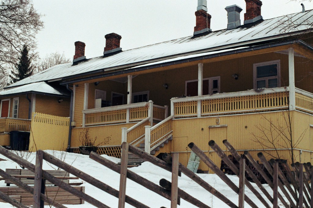 Around the Vaajavirta River near the city of Jyväskylä in Central Finland is a path going from a small island with old buildings to the hills near the coast of the river. I took the following pictures while walking through the path during this winter. On the island, there are pretty old wooden houses and from the path there is a nice view of the wide river and the hills around it. The city is visible from the top of the hill, but it is very difficult to walk up there during winter due to ice.