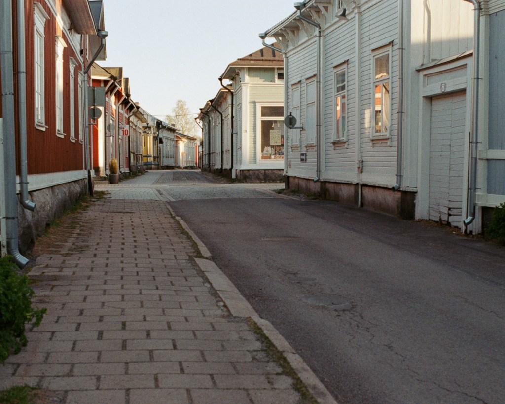 In the town of Rauma in Western Finland, there is the old town center which contains beautiful old wooden houses. I walked through a small part of the old town and visited a nearby trail at a lake during an evening and took the following pictures there. These pictures were taken pretty late in the evening, but it still surprised me how empty the streets were. This did give me a good opportunity to take pictures without cars in the streets, that would not fit the mood of the old architecture.