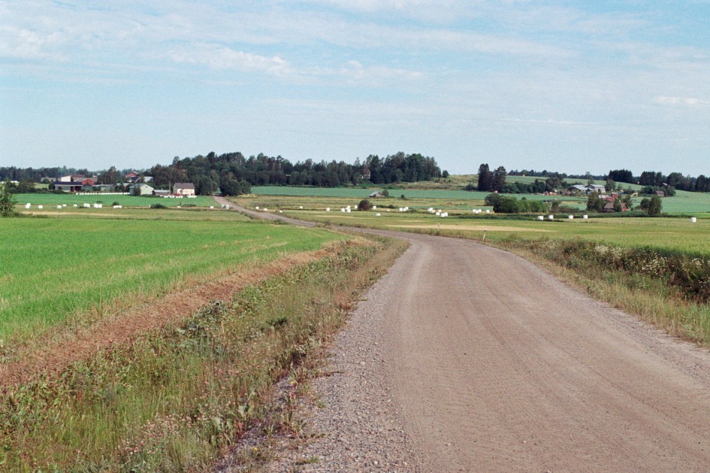 During a visit to the town of Asikkala in Central Finland, I rode a bike through some of the countryside near the town and took the pictures here during the ride. To south-east from the town, there are a bunch of farms and dirt roads going by the fields there. The scenes of the rural landscape there was very pretty. The road I took for this ride went through small hills with a fields and farms near the town of Vesivehmaa.