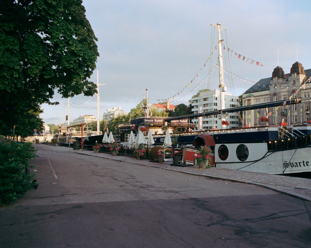 I took the pictures here while riding a bike along the coast of the Aurajoki River in the city of Turku in Western Finland. The Aurajoki River goes through the middle of the city, and there are many pretty sights along it. During the day there are many restaurants and bars there as well. I rode from near the University of Turku almost to the coast where the river flows in to the sea. These pictures were taken very early in the morning, so there weren’t many people around then.
