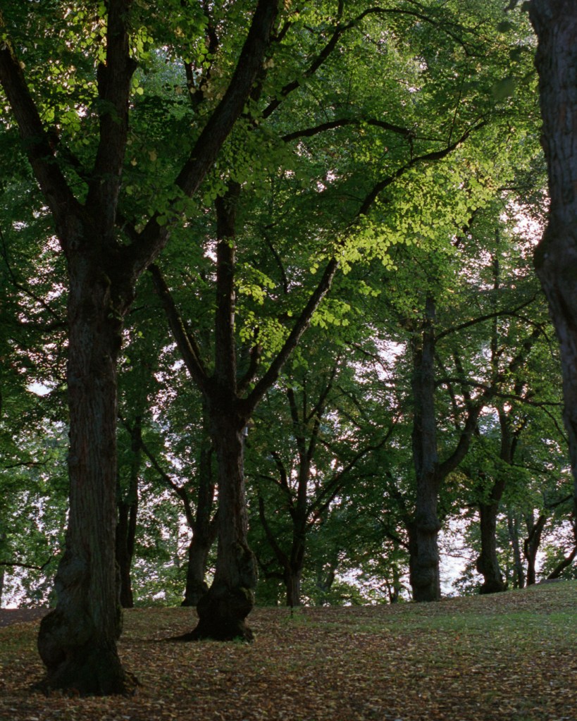 These were taken in early autumn when only very few of the leaves had changed colors or fallen, so the forests were still pretty green.