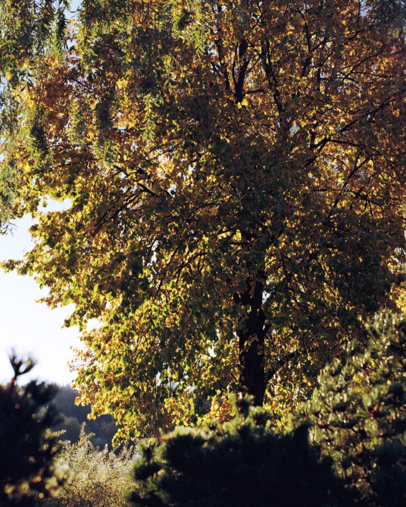The rising sun lit the autumn trees on the other side of the lake, but the sunrise was unfortunately not directly visible from this side of the coast, at least during this time of the year.